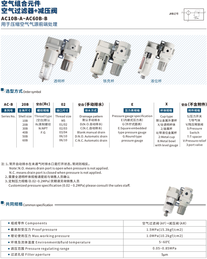 AC10B-A~AC60B-B空气过滤器+减压阀