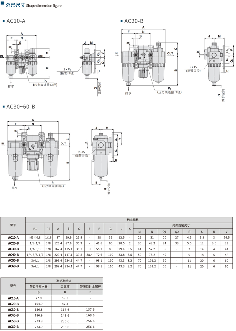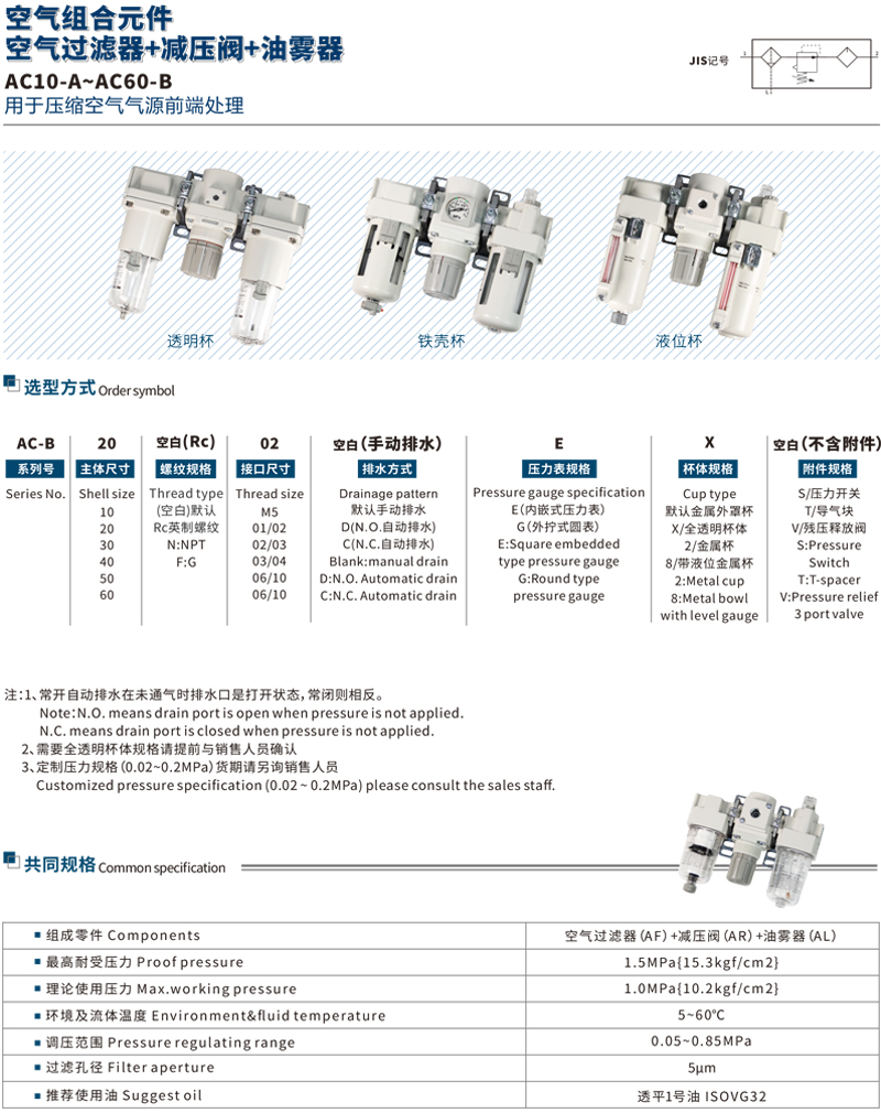 AC10-A~AC60-B空气过滤器+减压阀+油雾器