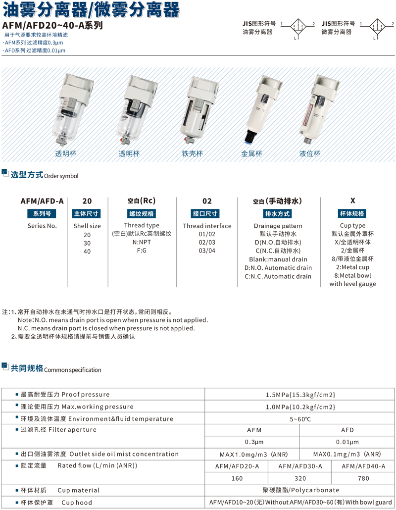 AFM/AFD20~40-A系列油雾分离器/微雾分离器