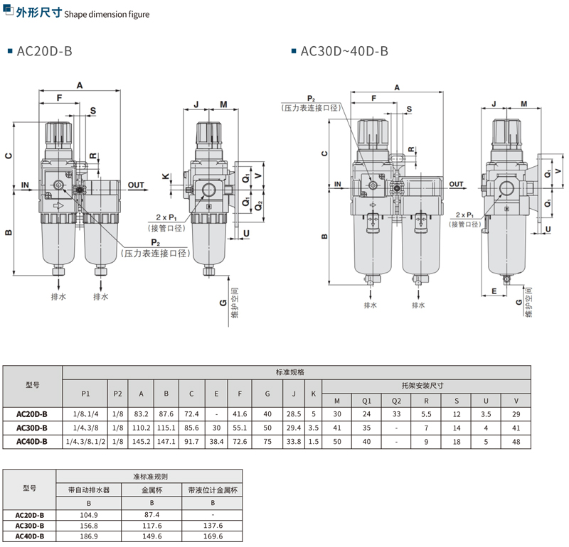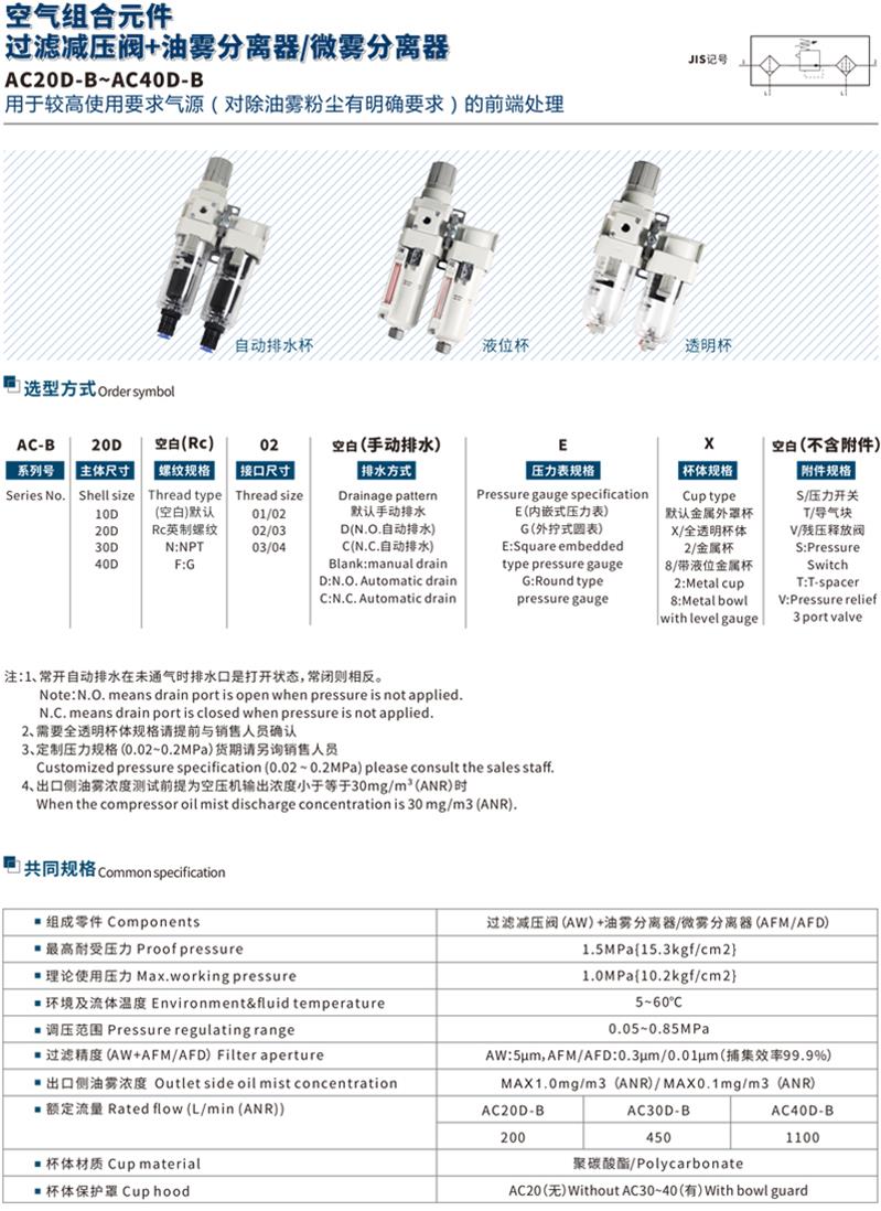 AC20D-B~AC40D-B过滤减压阀+油雾分离器/微雾分离器