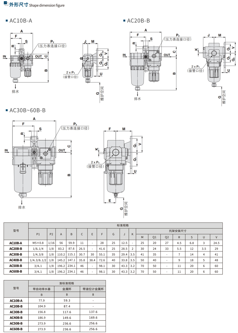 AC10B-A~AC60B-B空气过滤器+减压阀